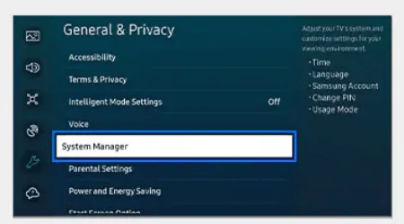 3. Then, scroll and click to select General and Privacy > System Manager.