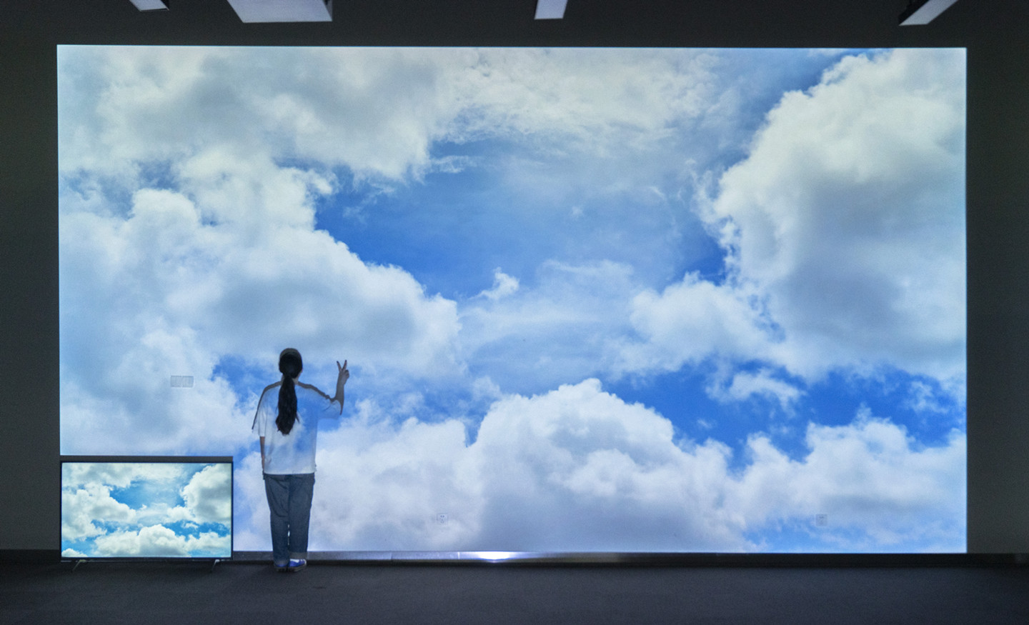 300 inches is shocking. In the lower left corner is a 55-inch TV.