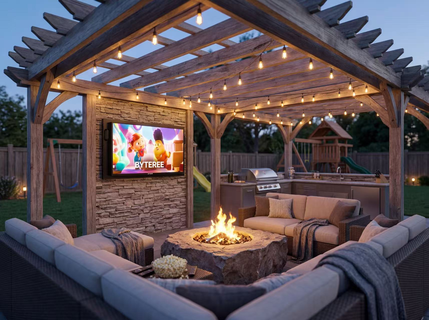 For everyday outdoor entertainment — watching Sunday football, streaming in the evening, casual daytime viewing while grilling, kids watching while swimming — projectors don't work. The ambient light battle is unwinnable.